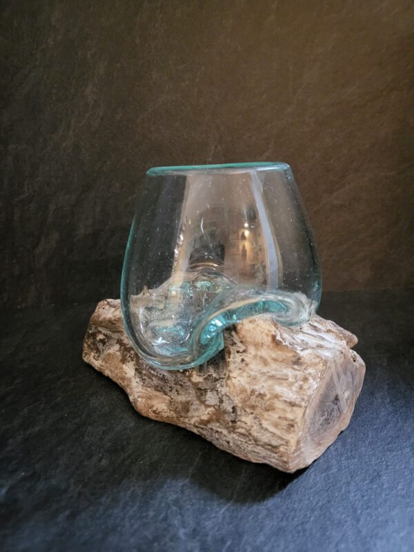 Gesmolten glazen kom op whitewash hout